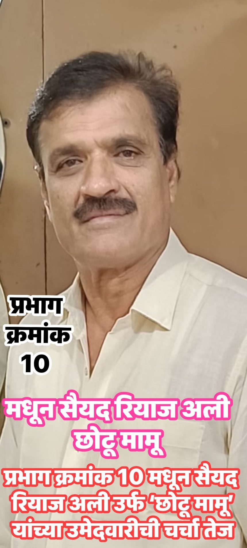 प्रभाग क्रमांक 10 मधून सैयद रियाज अली उर्फ ‘छोटू मामू’ यांच्या उमेदवारीची चर्चा तेज